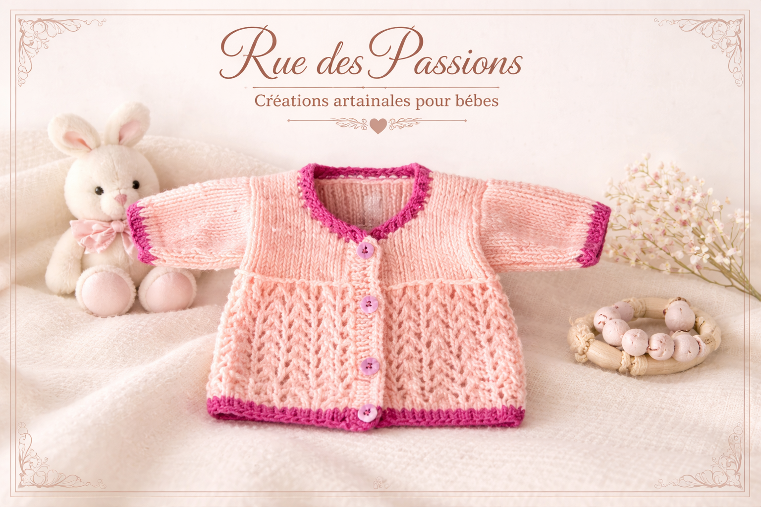Rangs 1 et 2 : côtes 1/1 rose foncé